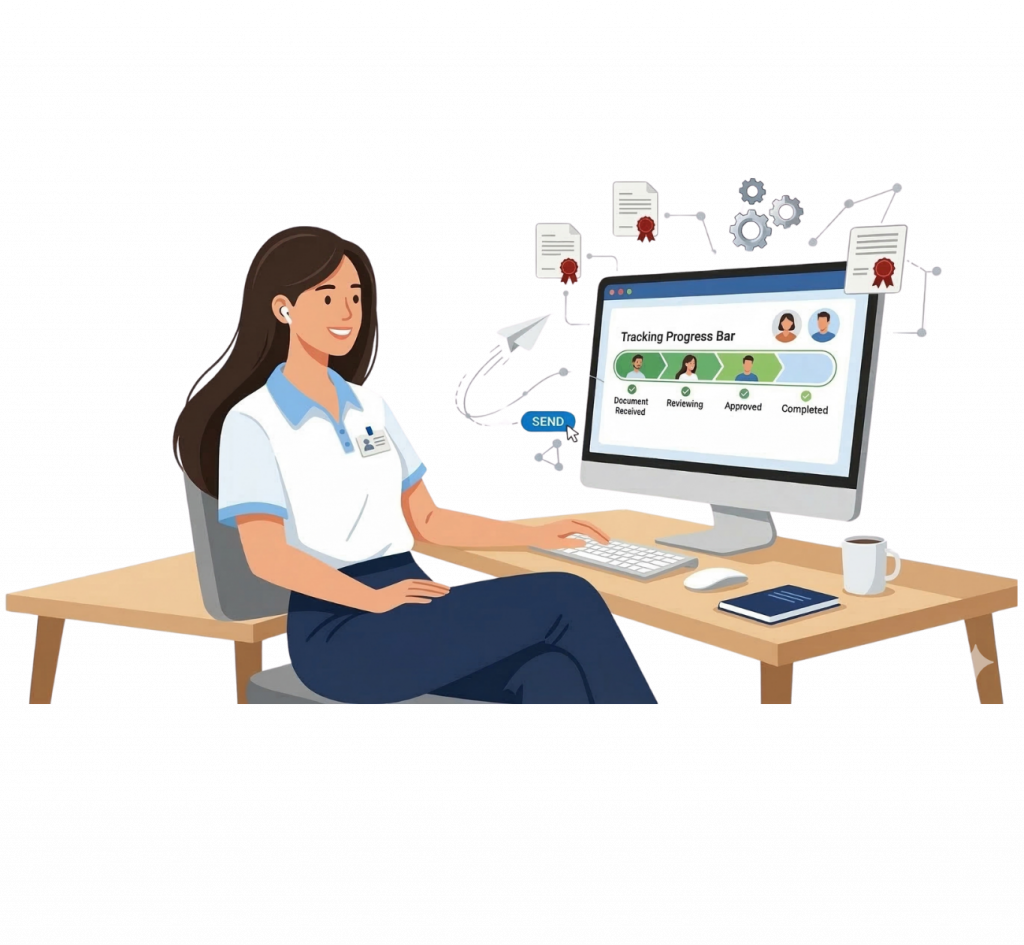 - เช็กสถานะเรียลไทม์ พร้อมแจ้งเตือนอัตโนมัติ : รู้ได้ทันทีว่าตอนนี้เอกสารค้างอยู่ที่ใครโดยไม่ต้องเดินไปทวงถาม พร้อมระบบเด้งแจ้งเตือนผู้ที่เกี่ยวข้องเมื่อถึงคิว หรือเมื่อเอกสารอนุมัติเสร็จสมบูรณ์แล้ว